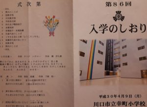校長先生をはじめ学校関係者、幸町小の児童の皆さん、新1年生および親御さん、地域・PTAなどご来賓の皆様、お疲れ様でした。
